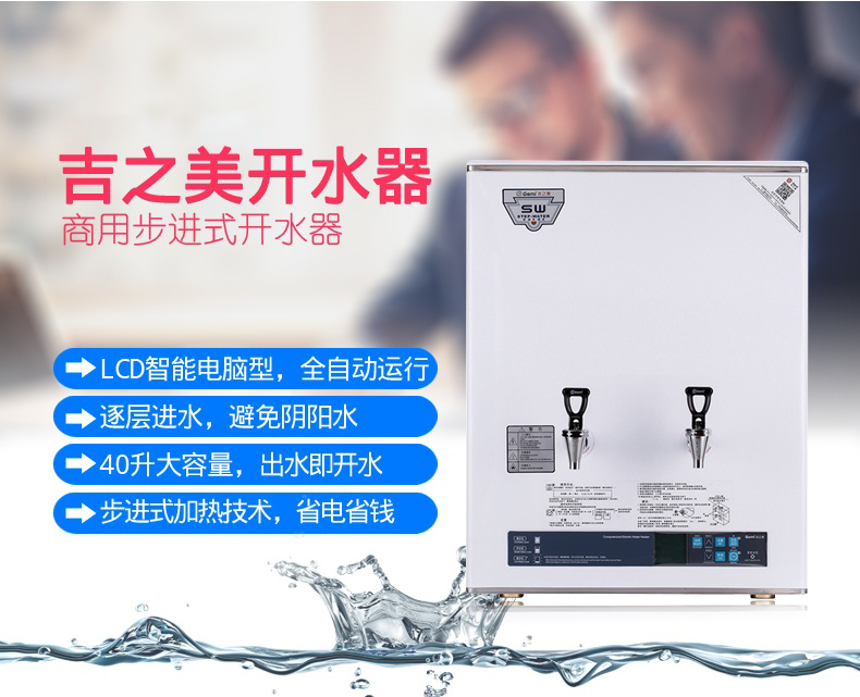 吉之美开水机,采用步进水逐层加绒技术,逐层进水逐层加热,可高速、恒温、不间断提供开水。出水即开水,沸腾就一次,有效避免了“阴阳水”和“千沸水”的产生。液晶电脑控制,拥有全年无人值守全自动运行并可视化报警的功能,省心省力。超薄一小步,科技一大步。开水器厚度仅有19cm,开创超薄型开水机新篇章。五防安全技术,故障自动报警,确保使用安全。设有自动排水功能机型可供选择。